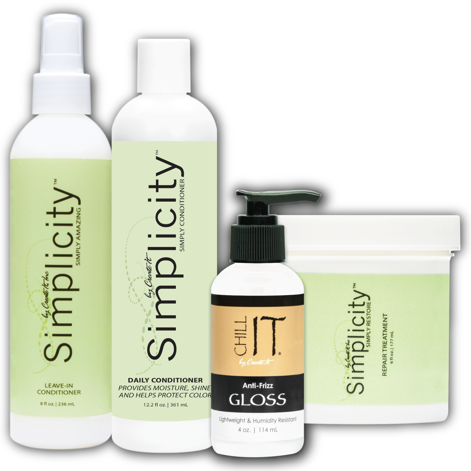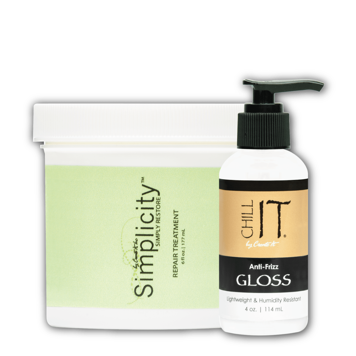 Combining Simply Restore - Repair Treatment along with Chill IT will create the ultimate hair revival. This cocktail helps damaged hair and restores your hair.