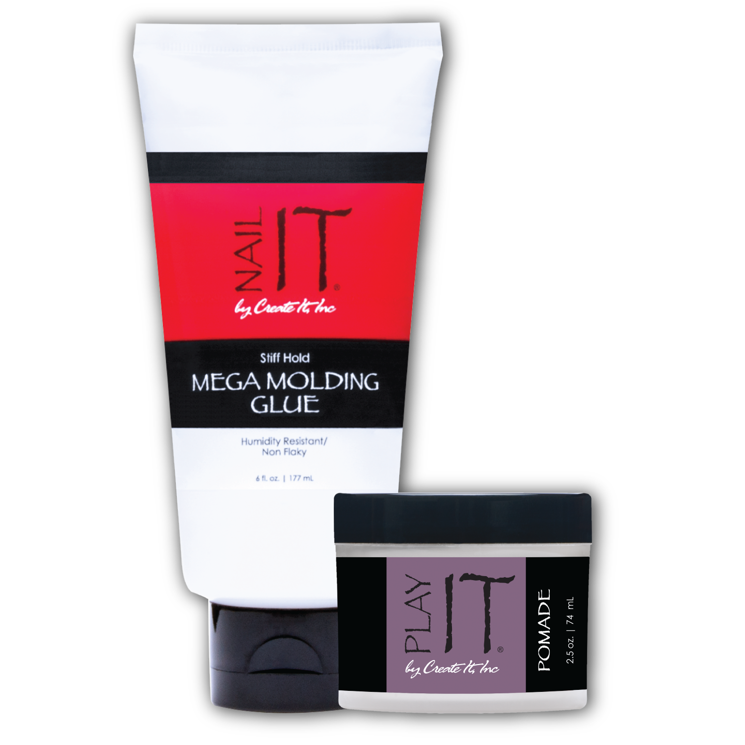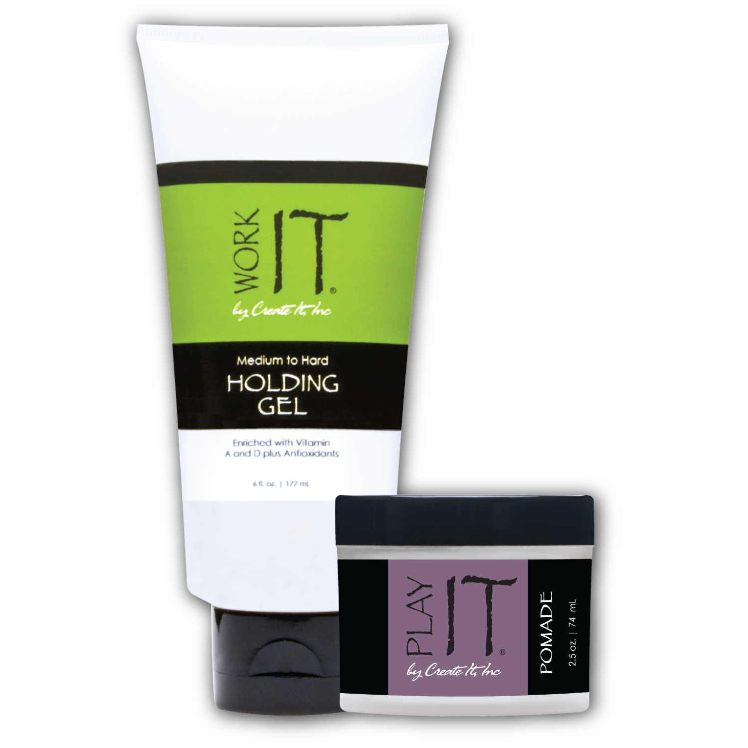 Play IT and Work IT paired help give chunky texture to short to medium hair. Great for detailing and texturizing looks while giving strong hold for all hair types.