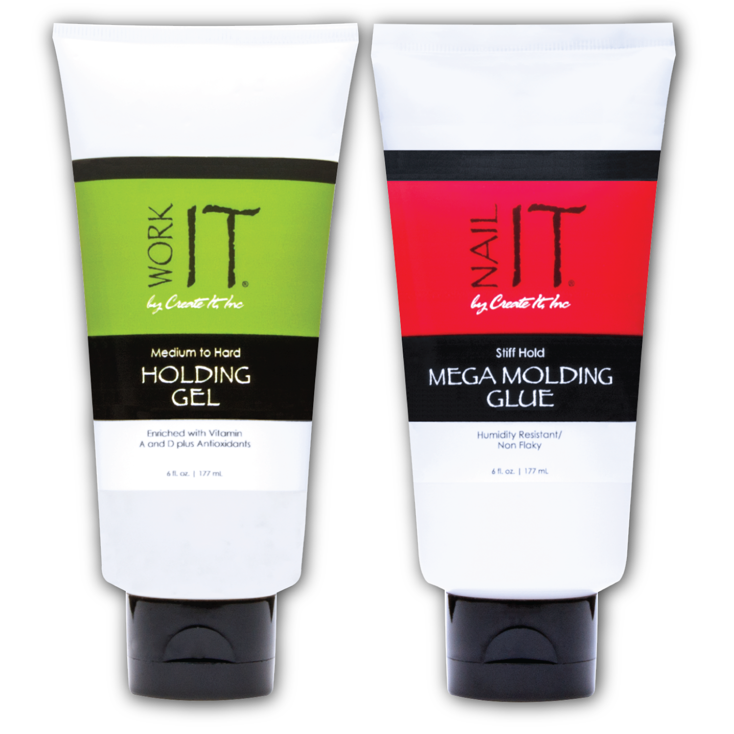 Work IT and Nail IT paired together create a thickness and strong hold for all hair types. This combination helps add control and well-defined style for short to medium hair.